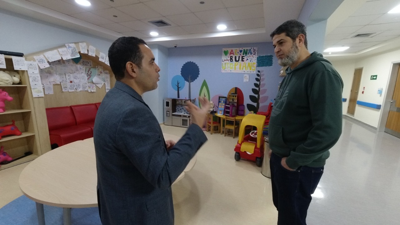 تضمنت زيارة وكيل شعبة الأدوات المكتبية، لمستشفى الناس، جولة تفقد خلالها غرف الأطفال المرضي، وتعرف على الخدمات الطبية المقدمة لهم، كما تفقد خلال جولته جميع أقسام المستشفى بما في ذلك الصيدلية والمطبخ والمغسلة وغيرها من الأقسام التي تتعلق جميعها بتقديم أفضل خدمة ورعاية للأطفال أثناء رحلة علاجهم داخل المستشفى، إضافة إلى هذا اطلع على آلية العمل داخل أقسام الأطفال والقلب والقسطرة والجهاز الهضمي والحروق.