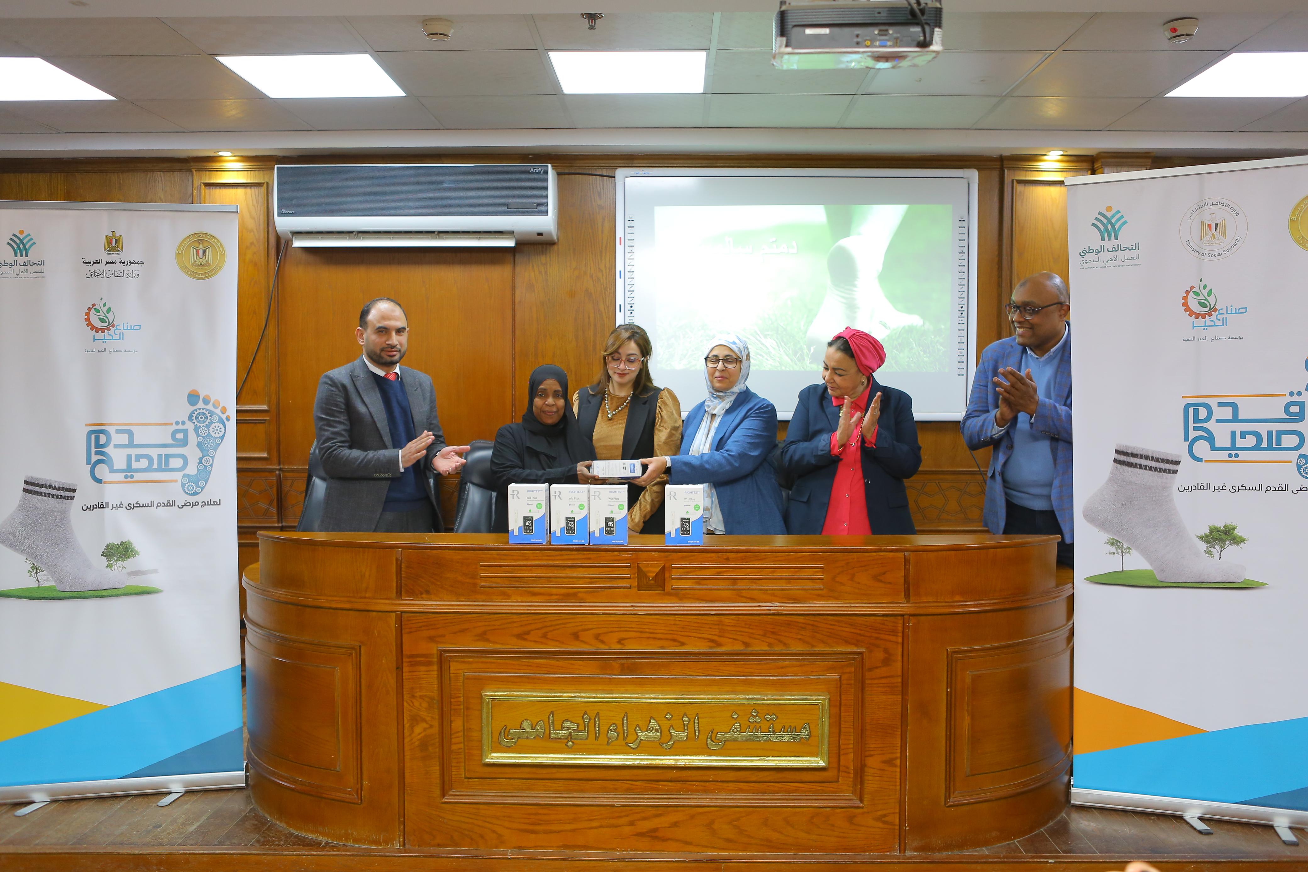 وخلال الفاعلية، قدّم فريق مؤسسة صُنّاع الخير محاضرة تناولت جهود المؤسسة في علاج مرضى القدم السكري من خلال مبادرة «قَدَم صَحِيح»، والتي تهدف إلى تقديم الرعاية الطبية المتكاملة لمرضى القدم السكري والتوعية بأساليب الوقاية من الإصابة وممارسات الغيار الصحيح.