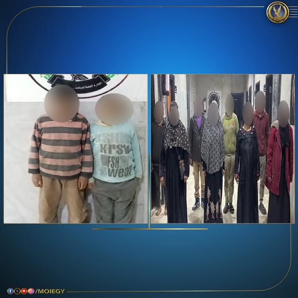 استمرارًا لجهود مكافحة جرائم استغلال الأحداث، تمكنت الإدارة العامة لمباحث رعاية الأحداث بقطاع الشرطة المتخصصة من ضبط 12 شخصًا (5 رجال و7 سيدات، من بينهم 7 لهم معلومات جنائية)