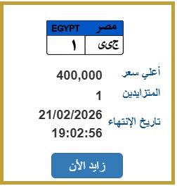 سجل المزاد حتى الآن 400 ألف جنيه على اللوحة التي تحمل رقم “ج ي ي 1” وتزايد علي اللوحة شخص فقط حتى الآن، ومن المقرر انتهاء المزايدة على اللوحة في 21 فبراير.