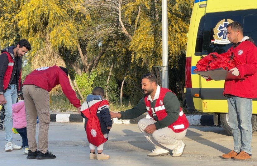 هذا إلى جانب، توزيع الوجبات الغذائية الساخنة، توفير الملابس الثقيلة ومستلزمات العناية الشخصية، وتوزيع «حقيبة العودة» على العائدين إلى القطاع.